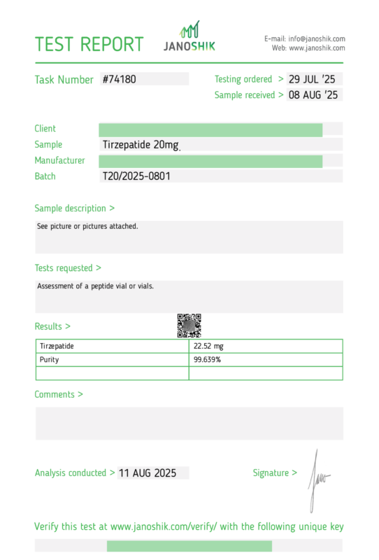 Our Certificate of Analysis (COA) Library gives you complete, verifiable transparency for every peptide batch we supply. Each COA is backed by independent third-party laboratory testing, confirming purity, identity, and quality so there’s no uncertainty and no blind trust required.