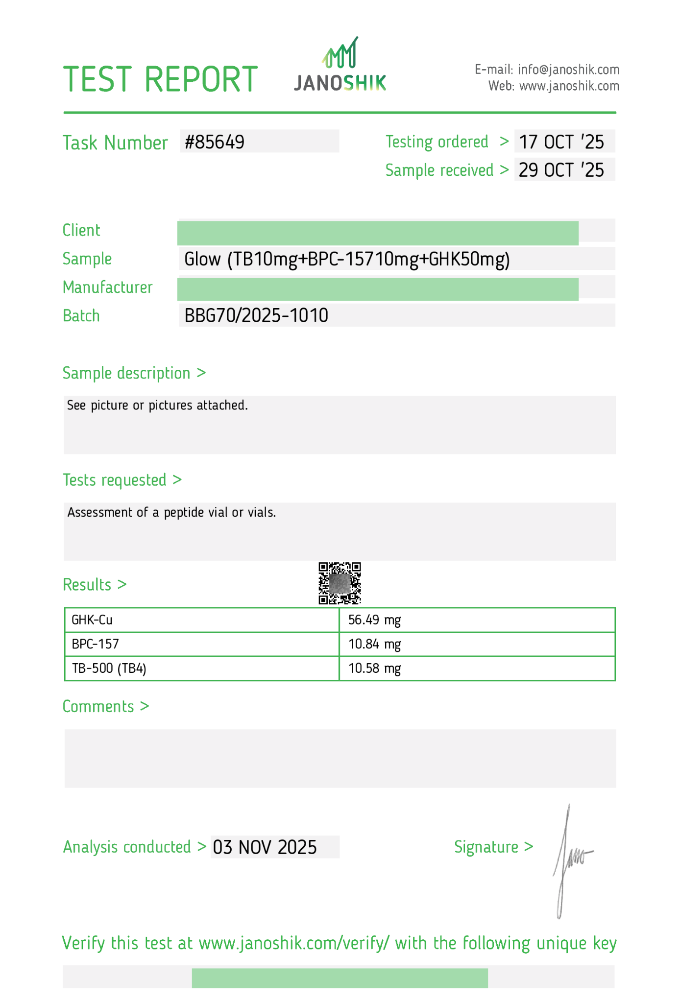 Manufactured in a GMP-compliant, ISO 9001:2008 certified facility with ≥99% purity. Each batch of our research peptides is fully analyzed for quality assurance and confirmed free of LPS.